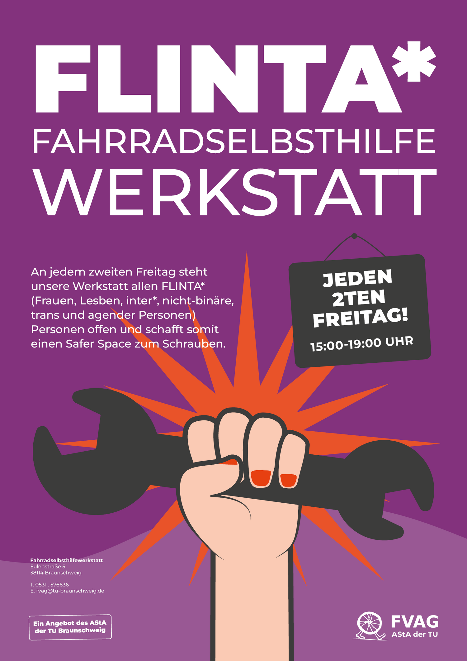 An jedem zweiten Freitag steht unsere Werkstatt allen FLINTA* (Frauen, Lesben, inter*, nicht-binäre, trans und agender Personen) offen und schafft somit einen Safer Space zum Schrauben. 🔧🚲