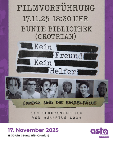 Gemeinsam wollen wir, nach der Lesung von Mohamed Amjahid über das System von Polizeigewalt, nun die Dokumentation über eine der aktuellsten Fälle anschauen, die Ermordung von Lorenz. In Solidarität mit seiner Familie und Freunden.