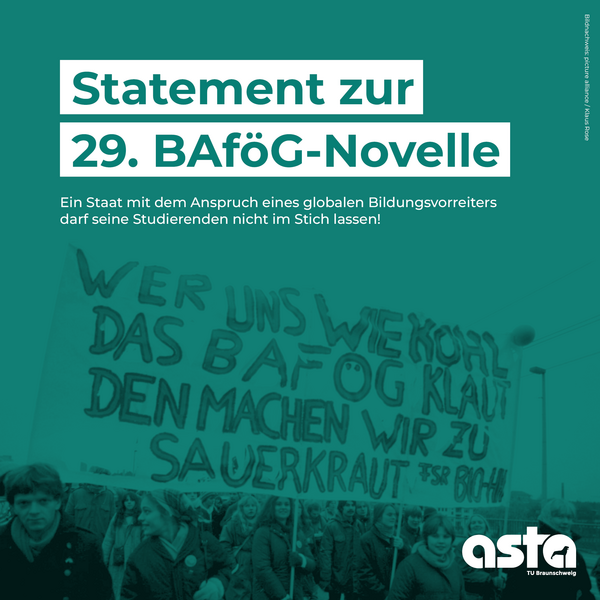 Auch in Braunschweig spüren wir die Auswirkungen dieser Unterfinanzierung von Studierenden. Die Sozialhilfen des AStA werden immer mehr in Anspruch genommen, Anfragen zur finanziellen Beratung und Unterstützung häufen sich. Besonders bei Fälligkeit des Semesterbeitrags, geraten viele Studierende in Not. Immer wieder müssen sich Studierende verschulden, um sich ein Studium mit BAföG leisten zu können.