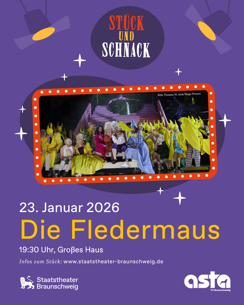 Nutze die Gelegenheit und erlebe Theater auf einem neuen Level – und das kostenlos mit deiner TUCard!Da nur begrenzte Plätze verfügbar sind, ist eine verbindliche Anmeldung bis zum 21.01.2026 erforderlich.