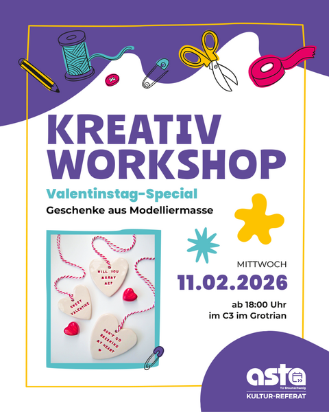 ☝️ Da die Modelliermasse erst trocknen muss, besteht die Möglichkeit, die Geschenke im AStA zu trocknen und später abzuholen.