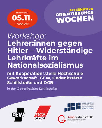 mit GEW, Kooperationsstelle Hochschule Gewerkschaft, DGB und Gedenkstätte Schillstraße